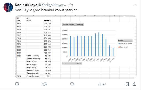 Bir önceki aya göre (Haziran 2024) yüzde 60’lık bir konut satış artışı var.
