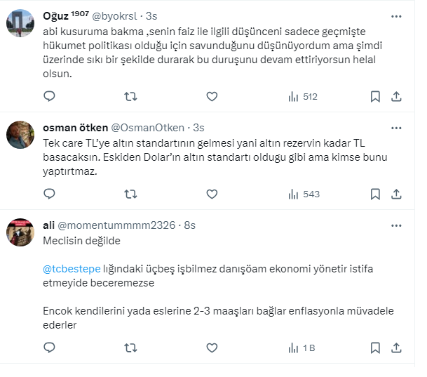 osman ötken @OsmanOtken'' Tek care TL’ye altın standartının gelmesi yani altın rezervin kadar TL basacaksın. Eskiden Dolar’ın altın standartı oldugu gibi ama kimse bunu yaptırtmaz.'' dedi.