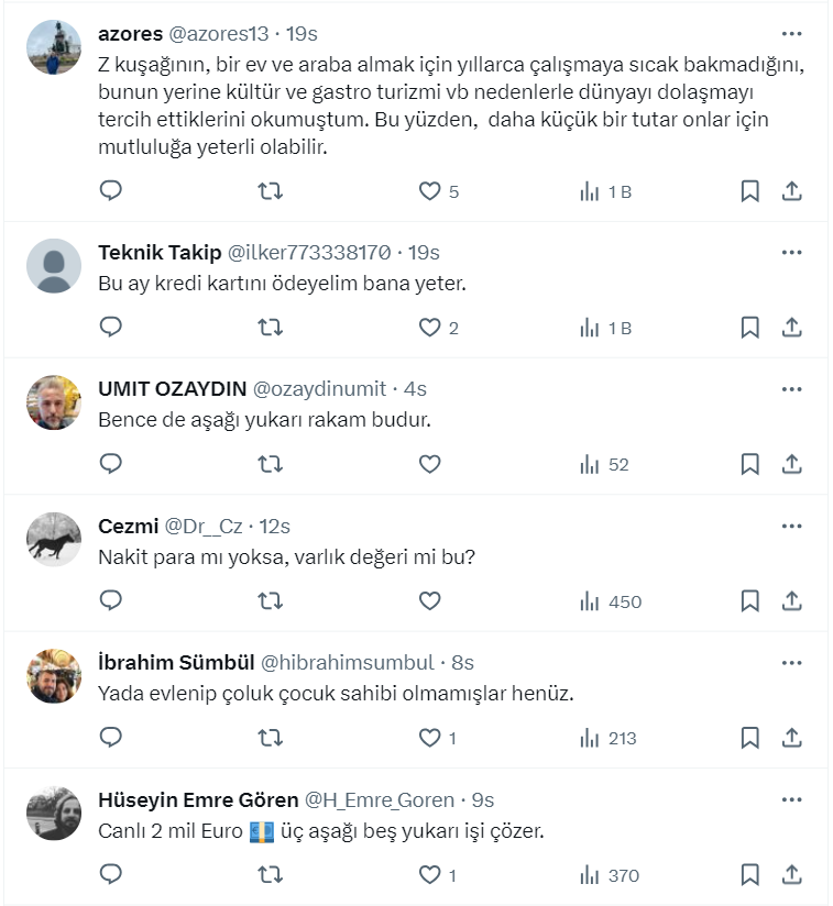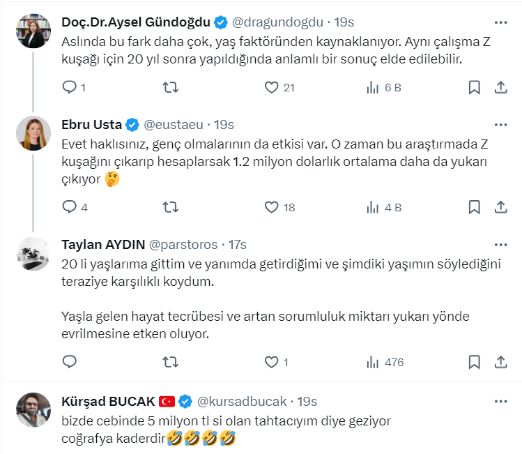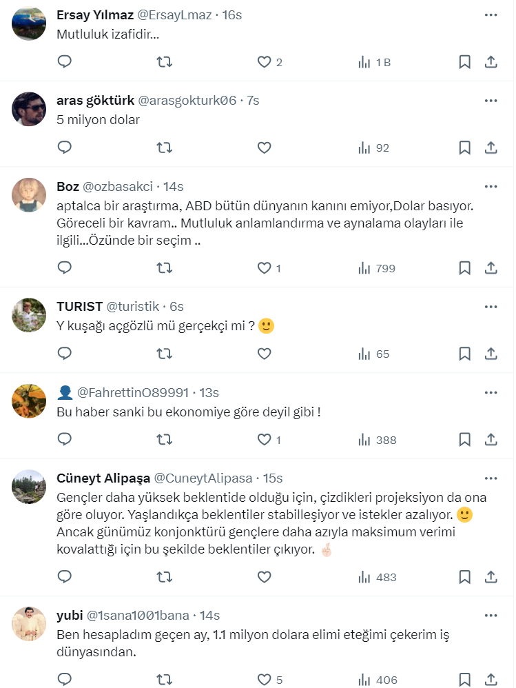 Araştırmaya göre Y kuşağı (millennials) 1,7 milyon dolarla mutlu olabileceğini, Z kuşağı ise ortalama 487 bin dolarla mutlu olabileceğini söylüyor.
