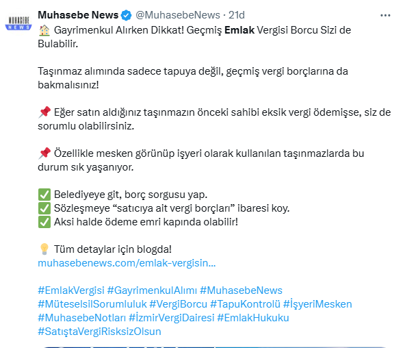 Eğer satın aldığınız taşınmazın önceki sahibi eksik vergi ödemişse, siz de sorumlu olabilirsiniz.