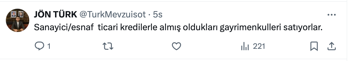 Gayrimenkul Uzmanı Murat Gültekin’in paylaşımı şu şekilde:
