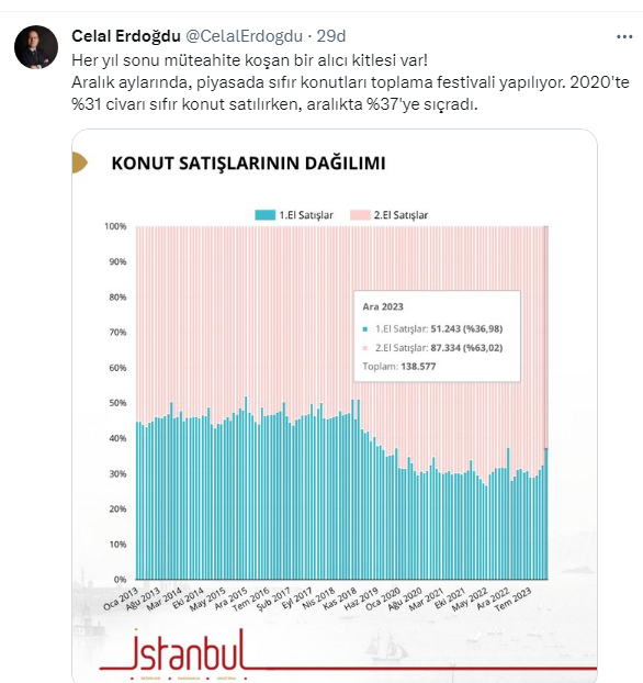 Aralık aylarında, piyasada sıfır konutları toplama festivali yapılıyor. 2020'te %31 civarı sıfır konut satılırken, aralıkta %37'ye sıçradı.