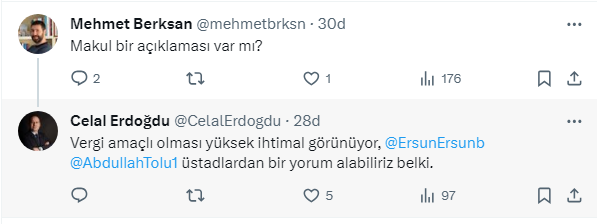 Celal Erdoğdu @CelalErdogdu: Vergi amaçlı olması yüksek ihtimal görünüyor,