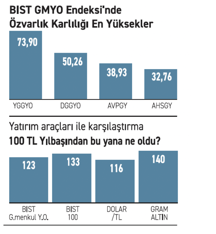 Ekonomim yazarı Zeynep Aktaş bugünkü yazısında BIST GMYO Endeksi’ndeki hisselerin güçlü performanslarıyla yatırımcıların ilgisini çektiğini belirterek, gayrimenkule olan ilginin önümüzdeki yıl artmasını beklediğini kaydetti.
