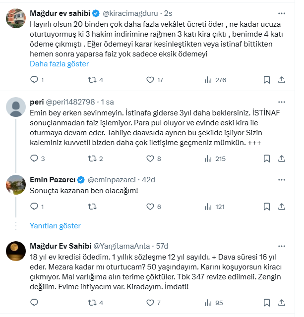 Mahkemenin sonuçlandığını açıklayan Pazarcı, mahkeme tarafından kiranın 3 katını ödemesine hükmedildiğini, avukatına 20 bin lira vekalet ücreti ödeneceğini ve eksik ödediği kiralar da faiziyle birlikte alınacağı kararı verildiğini aktardı.