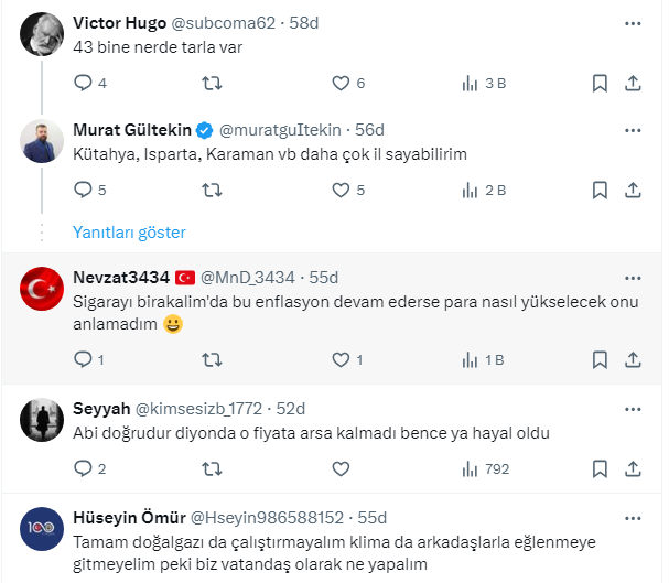 Takipçilerinden gelen bu kadar parayla tarla alınamayacağı yorumlarına Gültekin, şehir şehir örnek verdi.