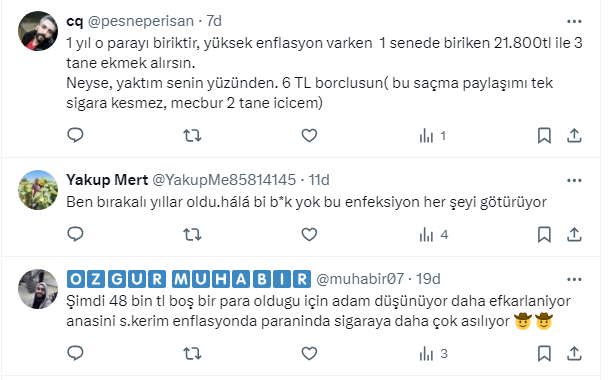 “Günde 1 paket sigaraya verdiğin para 60 TL, sigarayı bırak ve 1 ayda 1800 TL, 1 senede 21 bin 600, 2 senede 43 bin 200 lira biriktirirsin. Sigarayı bırak ve 2 senede Türkiye'nin çoğu ilinde tarla sahibi ol.”