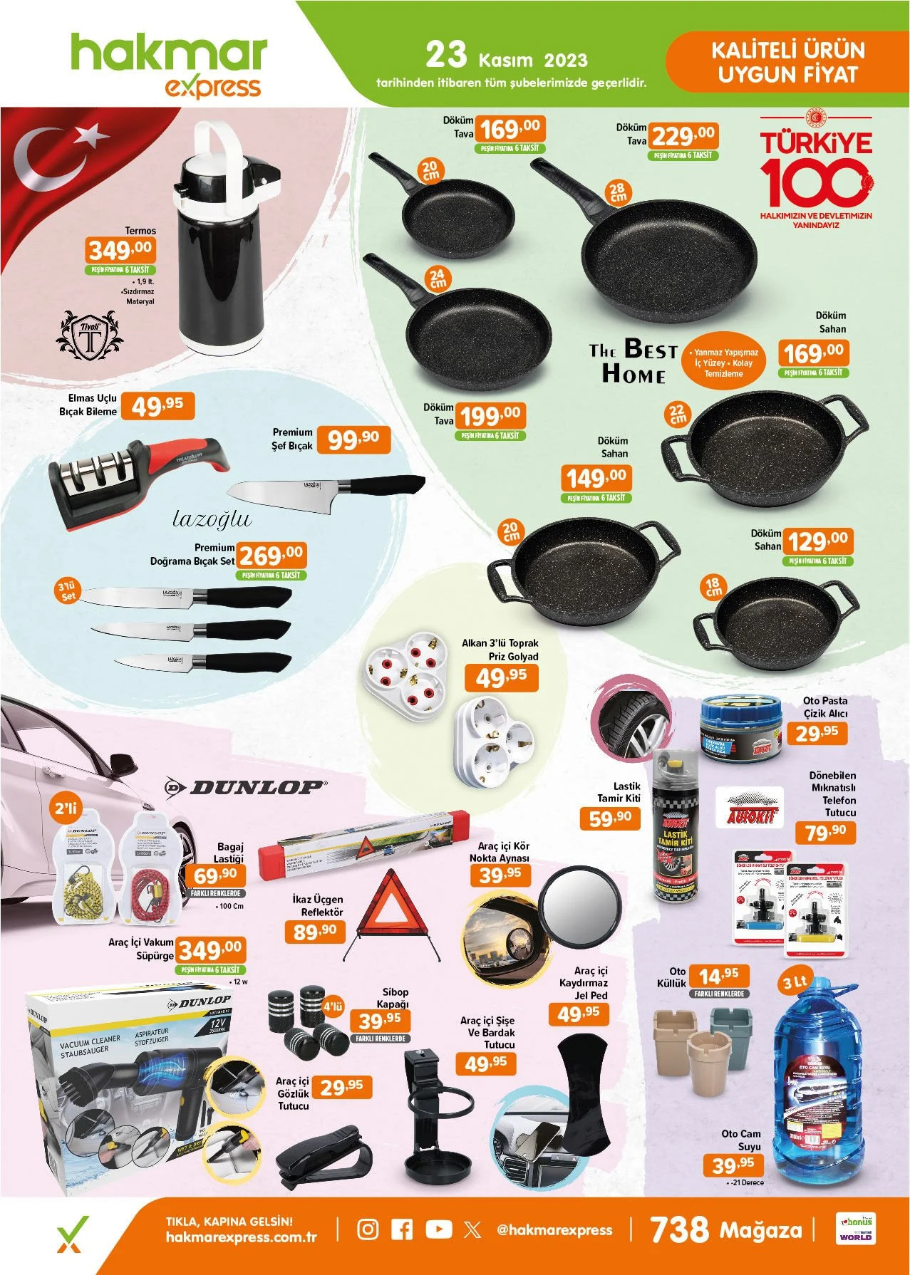 Hakmar, 23 Kasım ve 30 Kasım tarihlerinde hangi ürünlerin indirime gireceğini açıkladı. Bu kapsamda, Hakmar’da 22 Kasım’da 3’lü toprak prizden araç içi kör nokta aynasına, kablolu kulaklıktan şef bıçağına kadar pek çok ürün indirime girdi.