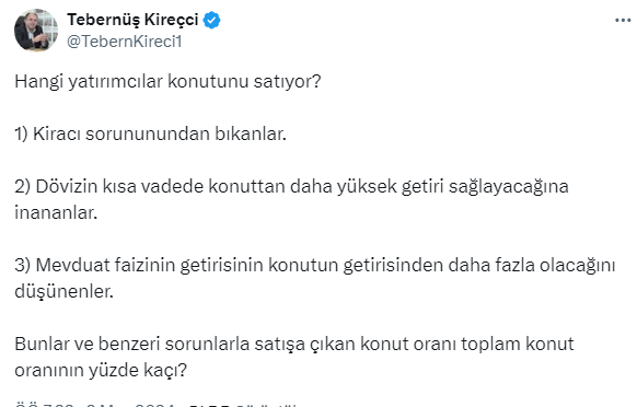 Tebernüş Kireçci @TebernKireci1 Hangi yatırımcılar konutunu satıyor?