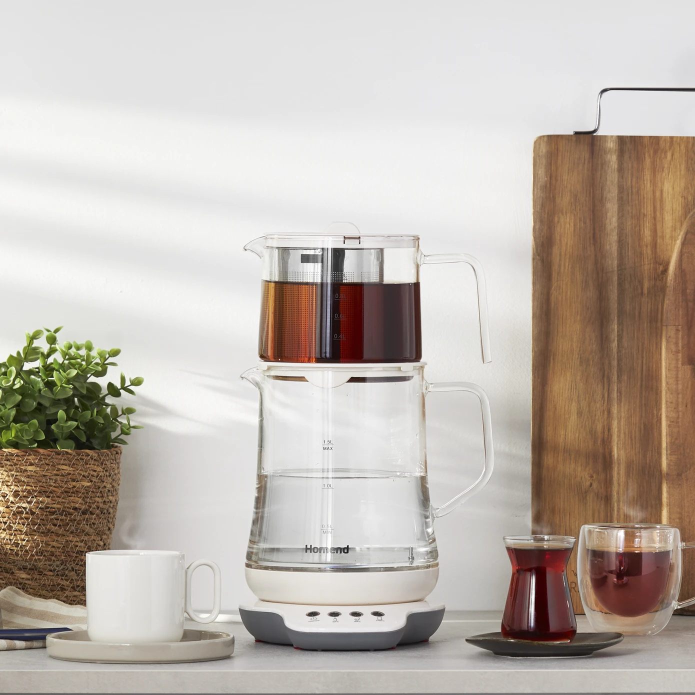 Özellikle çay keyfini teknolojiyle birleştirmek isteyenler için ideal bir tercih olan Homend Royaltea 1749H, konuşma özelliği sayesinde suyun sıcaklığını ve demleme süresini size anlatarak en iyi çay deneyimini sunuyor. Cam tasarımı ise çayın rengini ve kıvamını net bir şekilde gözlemlemenizi sağlıyor.