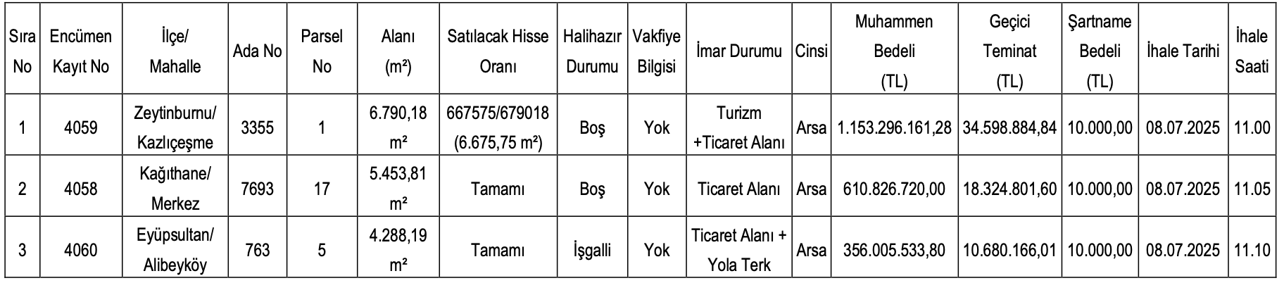 İstanbul Büyükşehir Belediye Başkanlığı, İstanbul Zeytinburnu, Kağıthane ve Eyüpsultan’da yer alan imarlı arsaların satışı için düğmeye bastı.