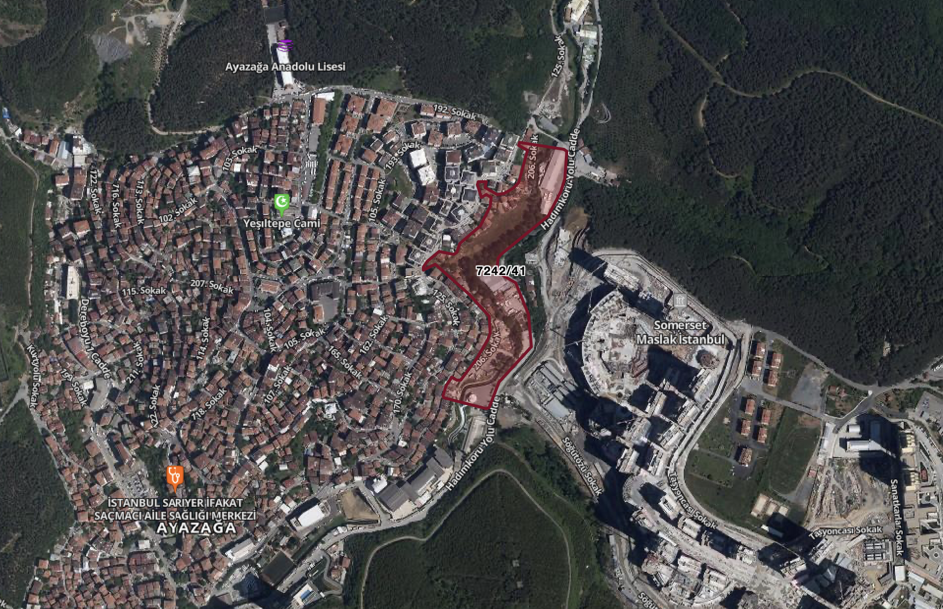 7242 ada, 41 parsel, İstanbul'un önemli iş merkezi bölgesi olan, çok sayıda ofis, ticaret merkezi ve rezidans projelerine ev sahipliği yapan Maslak'a oldukça yakın bir konumda bulunuyor. Ayazağa'nın, Levent'e ve Etiler'e olan yakınlığı bölgenin ticari açıdan da cazip olmasını sağlıyor.