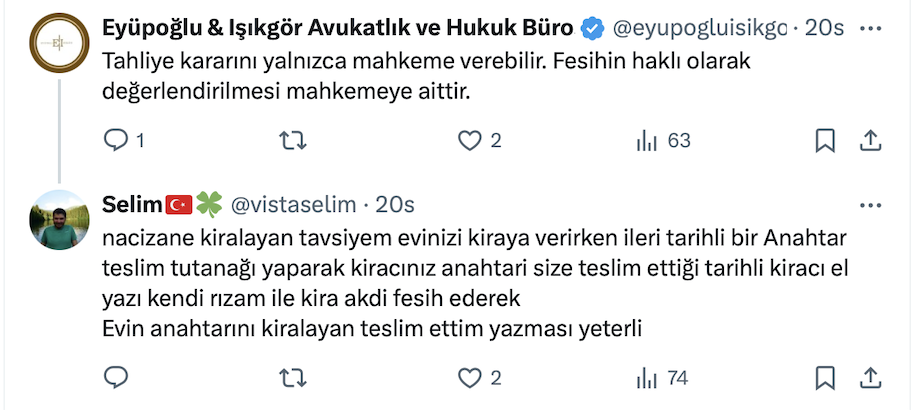 Eyüpoğlu - Işıkgör Avukatlık ve Hukuk Bürosu resmi sosyal medya hesabı https://x.com/eyupogluisikgor üzerinden yaptığı paylaşımda iki haklı ihtar sebebiyle tahliyenin detaylarını açıkladı.