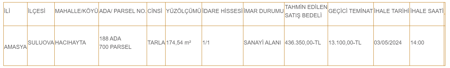Aşağıda tahmini bedeli, geçici teminatı, İhale günü, saati ve özellikleri belirtilen, mülkiyeti Karayolları Genel Müdürlüğüne ait “Tarla” olan taşınmaz mallar, 2886 Sayılı Devlet İhale Kanunu’nun 45. Maddesine göre Açık Teklif Usulüyle Samsun Karayolları 7. Bölge Müdürlüğü Binası İhale Salonunda toplanacak İhale Komisyonu huzurunda 03.05.2024 Cuma günü saat 14:00’de yapılacak ihale ile satılacaktır.