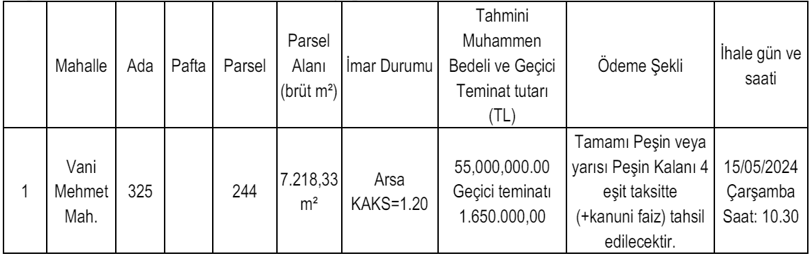 toplanacak İhale Komisyonu huzurunda 06.05.2024 Pazartesi günü saat 14:00’de yapılacak ihale ile satılacaktır.