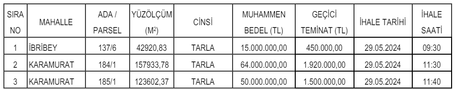Kayseri ve Tekirdağ'da yer alan 11 arsa ile arazi satışa çıkarıldı. Arsa ve arazilerin satış ihaleleri 29 Mayıs 2024 tarihinde yapılacak.