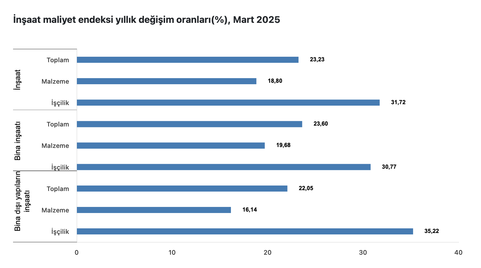 Türkiye İstatistik Kurumu, sektör tarafından merakla beklenen İnşaat Maliyet Endeksi Mart 2025 rakamlarını az önce resmen açıkladı.