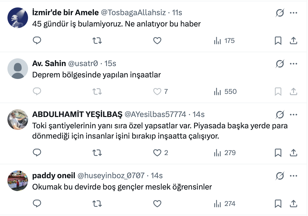 İnşaat sektörü ile ilgili detaylar pek çok kişi tarafından merak edilirken, emlak, inşaat ve konut sektörü ile ilgili yaptığı paylaşımlarla dikkat çeken 71,8 bin bin takipçili İnşaat Doktoru resmi X hesabı https://twitter.com/insaatdr üzerinden yaptığı paylaşımda inşaat sektöründe çalışan sayısının üç aydır rekor kırdığını belirtti.