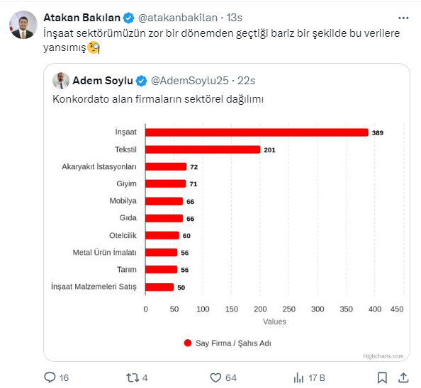 Tehlike çanları şimdi inşaat sektörü için çalıyor. İnşaat Mühendisi Atakan Bakılan sosyal medya hesabından inşaat sektörüyle ilgili kritik verilerin yer aldığı tabloyu paylaştı ve gerçekler gün yüzüne çıktı. İşte o tablo...