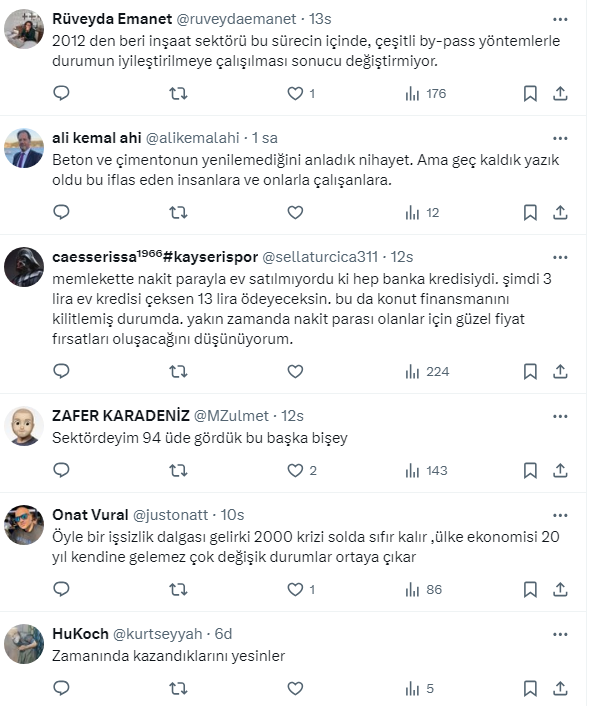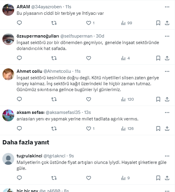 İnşaat maliyetlerindeki yüzde 70 artış, konut satışlarının durma noktasına gelmesi, konut fiyatlarının uçması ve kira bedellerinin fahiş rakamlara ulaşması konut sektörde krize neden oldu. İnşaat sektöründe resmen tehlike çanlarının çaldığnını gösterek kritik veriler ortaya çıktı. İnşaat Mühendisi Atakan Bakılan sosyal medya hesabı X'ten inşaat sektörünün zor bir dönemden geçtiğini söyleyerek o tabloyu paylaştı. İşte İnşaat Mühendisi Bakılan'ın o paylaşımı ve gelen yorumlar...