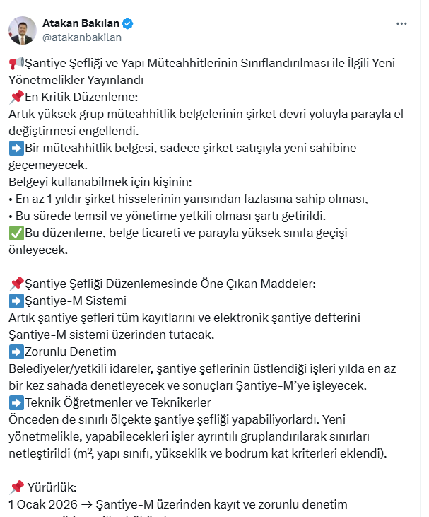 Konuyla ilgili sosyal medya hesabı X'ten açıklama yapan İnşaat Mühendisi Atakan Bakılan, yeni yönetmelikle ilgili ayrıntıları paylaştı. İşte o detaylar...