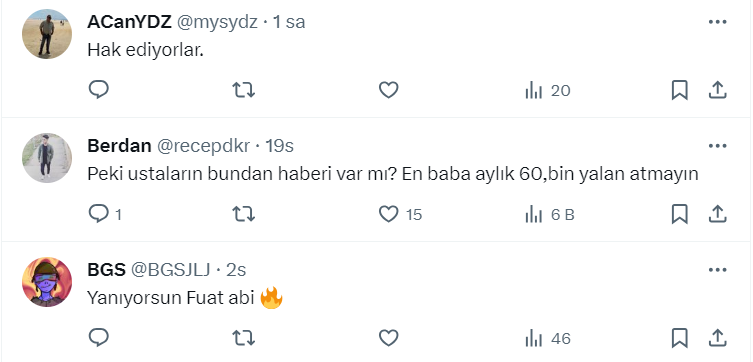 Kimi vatandaş yaşanan durumun yalan olduğunu söylerken, kimi vatandaş da inşaat ustalarının bu maaşları hak ettiğini söyledi.