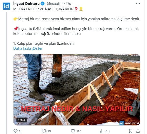 İnşaat doktoru, sosyal meyda hesabı X'ten inşaat sektörüne dair bilinmesi gereken kritik ayrıntılara değinmeye devam ediyor. Son olarak, kolon beton metrajını anlatan uzman kadro, inşaatta fiziki olarak imal edilen her şeyin bir metrajı olduğunu söyledi.