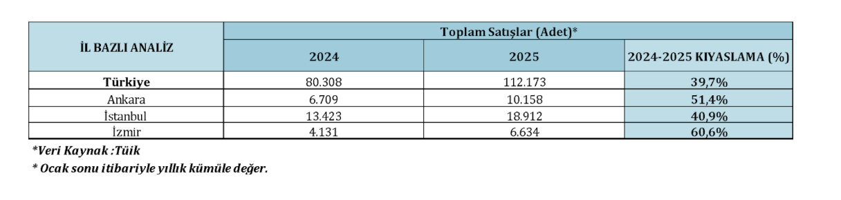 Büyükşehirlerdeki konut satışları da dikkat çekici bir artış yaşadı. 2025 Ocak ayında, bir önceki yılın aynı dönemine göre:
