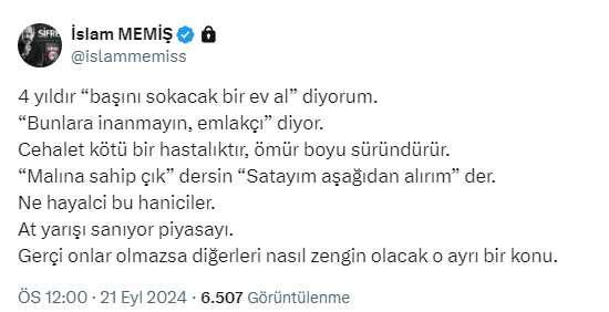 İslam Memiş 4 yıldır altını çizerek uyarıyor! Başınızı sokacak bir ev alın! Konut piyasasını 'at yarışı' sanmayın!