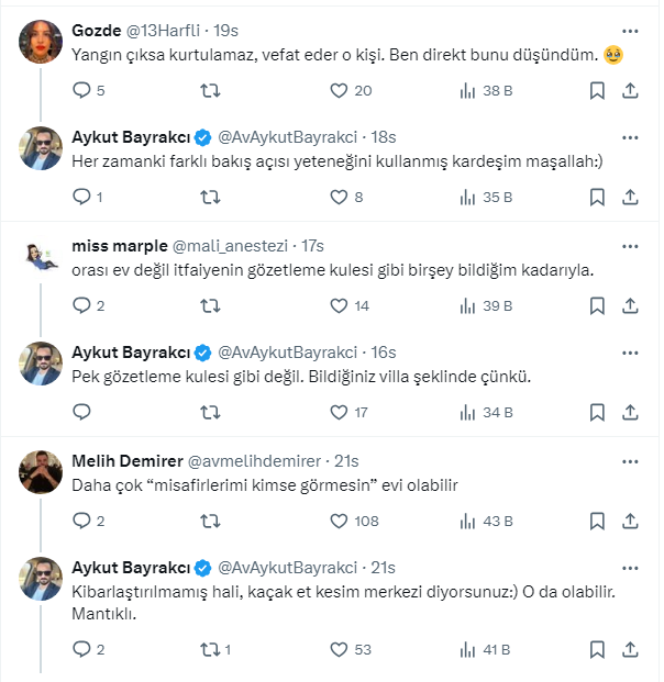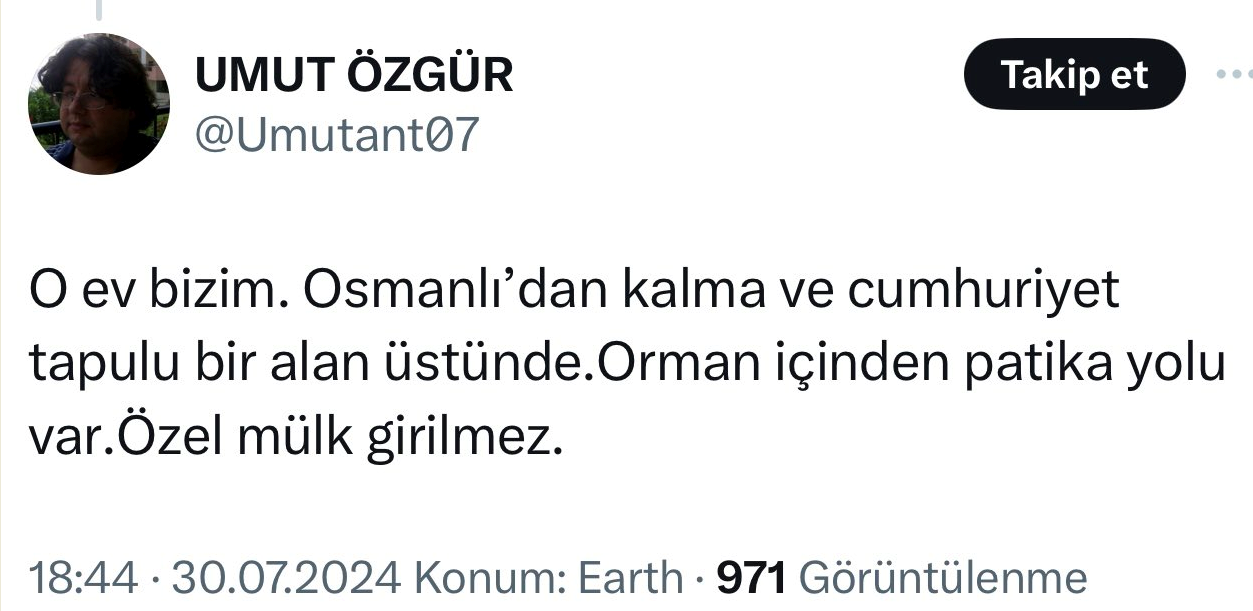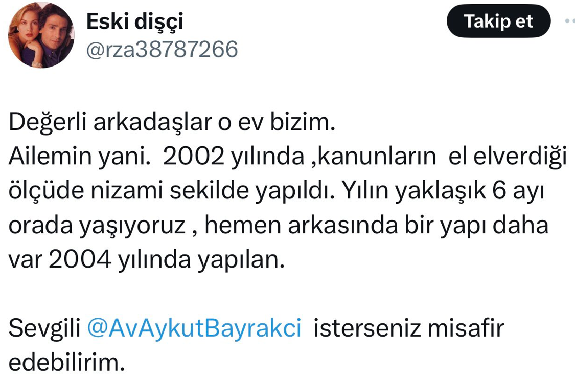 Bayrakçı, evin sahibini merak etti ve nasıl yapıldığını şu cümlelerle dile getirdi: ''Etrafında başkaca hiç bir yapının olmadığı orman içindeki bu evin sahibi kim, o bölgeye nasıl ev nasıl yaptı, oraya nasıl çıkıyor? Kafamda deli sorular…''dedi. Sosyal medya ayağa kalktı. Bakın evin sahibi kimler çıktıi, ne zaman yapılmış. Gelen yorumlar tebessüm ettirdi. İşte o paylaşım ve gelen yorumlar...