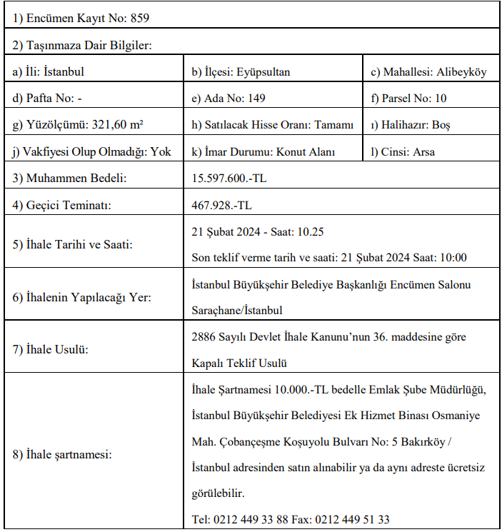 geç 21 Şubat 2024 saat: 10.00’a kadar Belediye Encümeni’ne (İstanbul Büyükşehir Belediyesi