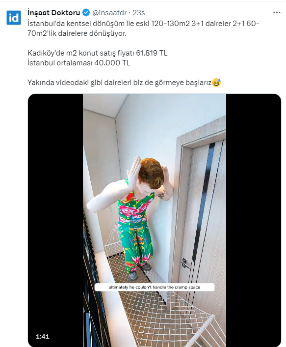 Kentsel dönüşüm çalışmaları ülke genelinde son sürat devam ediyor. Özellikle büüykşehirlerde kentsel dönüşüm çalışmaları hızlı şekilde ilerliyor. Kentse dönüşümle evler depreme dayanıklı hale getirilerek, sağlam yapılaşmalar oluşturuluyor. Fakat vatandaşlar kentsel dönüşüm sonrası evlerini küçülmesinden oldukça şikayetçi. İnşaat doktoru sosyal medya hesabı X'ten, konuyla ilgili bir paylaşım yaptı.