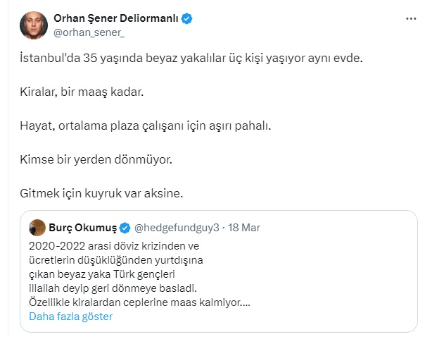 İstanbul'da kira bedelleri cep yakmaya devam ediyor. Her geçen gün artan fiyatlarla birlikte kiralar fahiş rakamlara ulaştı. Kiralar öyle yükseldi ki, bir maaş kadar oldu. Konuyla ilgili sosyal medya hesabı X'ten paylşaım yapan Orhan Şener Deliormanlı, bu duruma isyan etti. İşte Orhan Şener Deliormanlı'nın o paylaşımı ve gelen yorumlar...