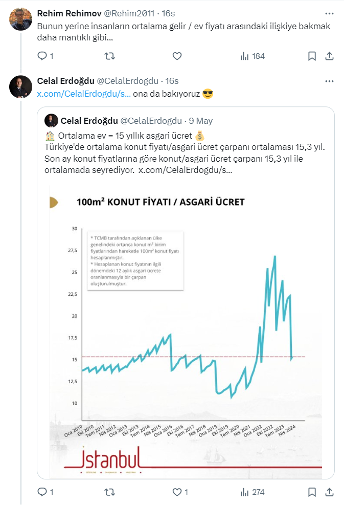 Şehir Plancısı ve Gayrimenkul Değerleme Uzmanı Celal Erdoğdu, resmi X hesabı https://twitter.com/CelalErdogdu üzerinden İstanbul'daki konut fiyatları ile ilgili çok ilginç bir paylaşım yaptı.