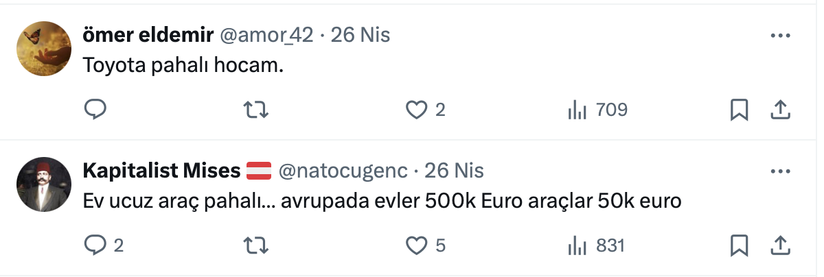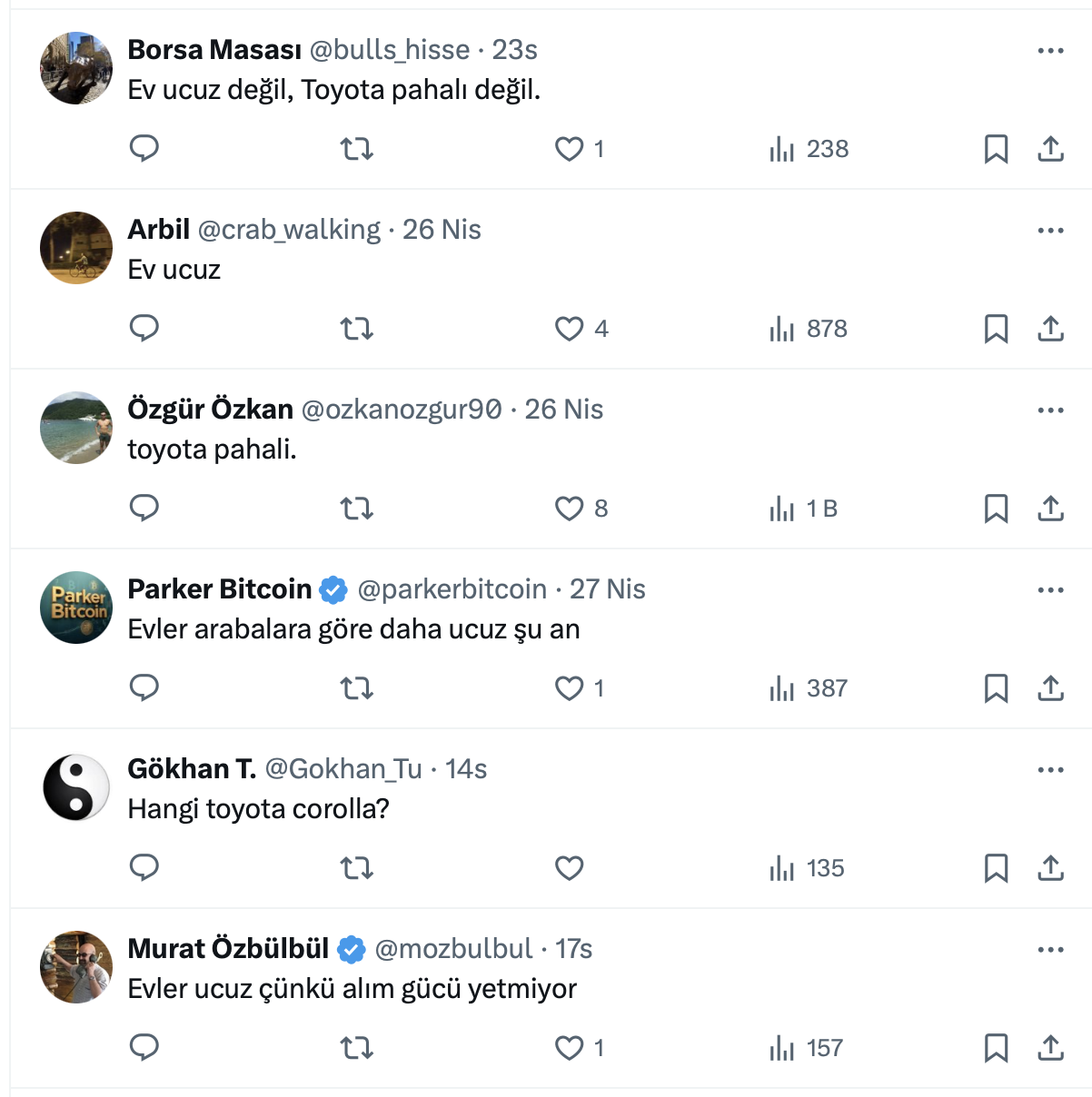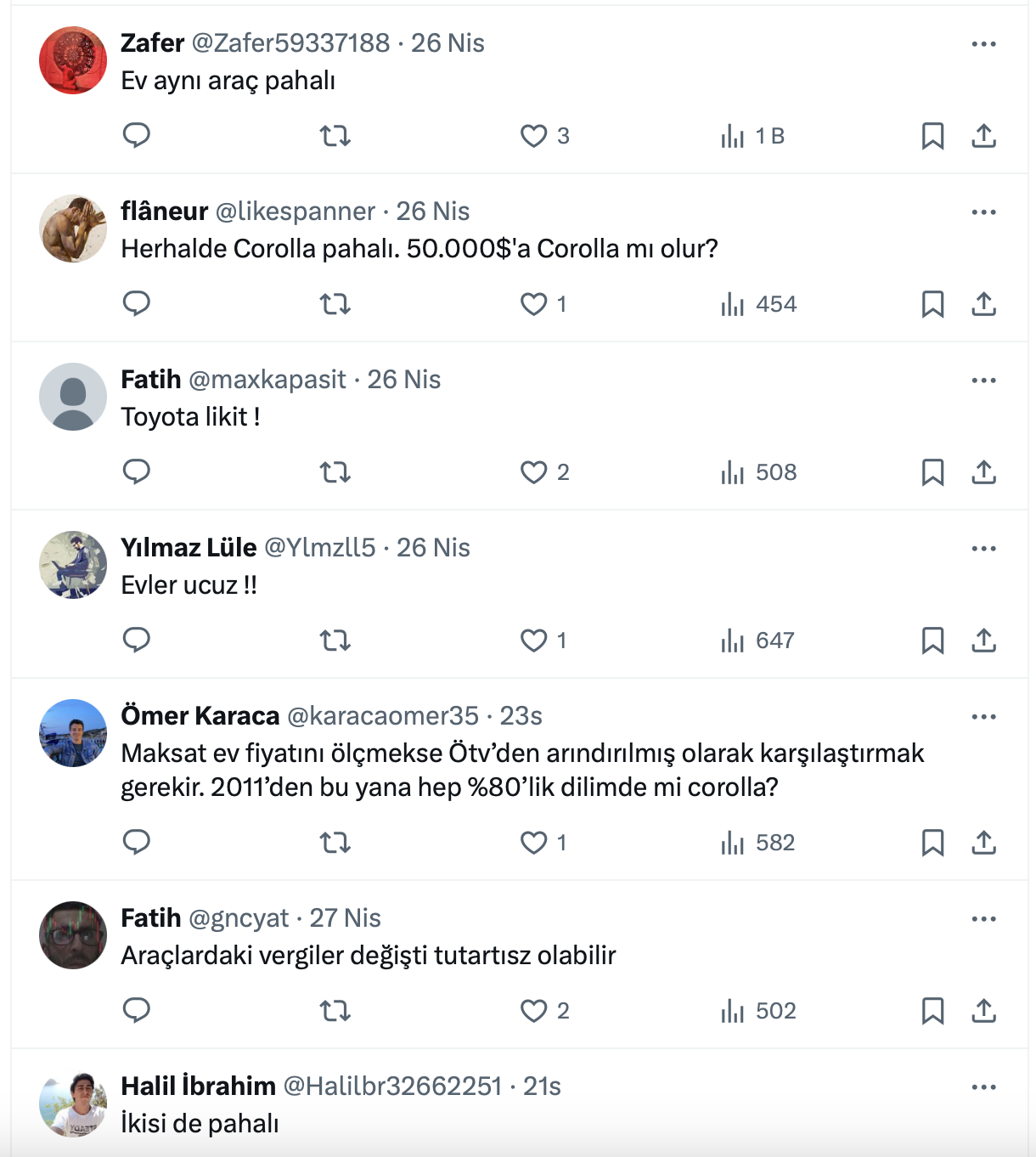 2,9 Toyota Corolla = İstanbul'da 1 Ev
