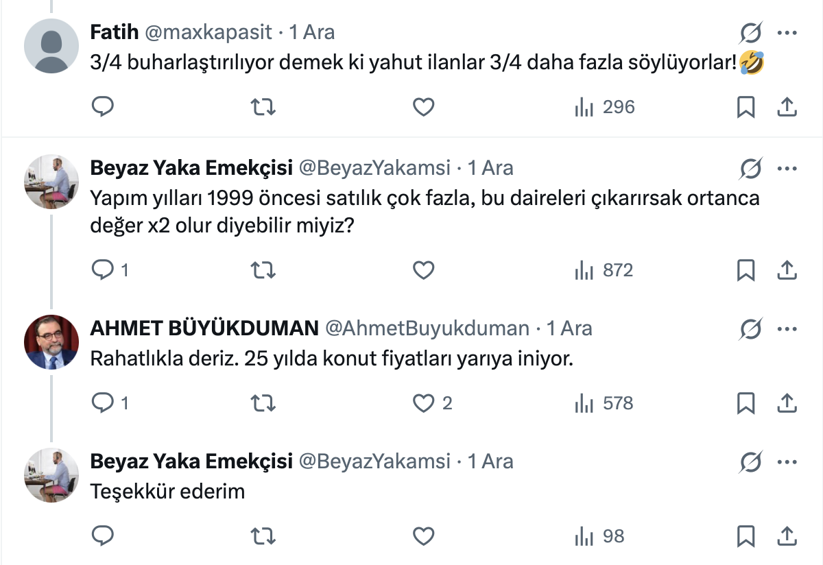 Gayrimenkul Değerleme Uzmanı Dr. Ahmet Büyükduman'ın paylaşımı şu şekilde: