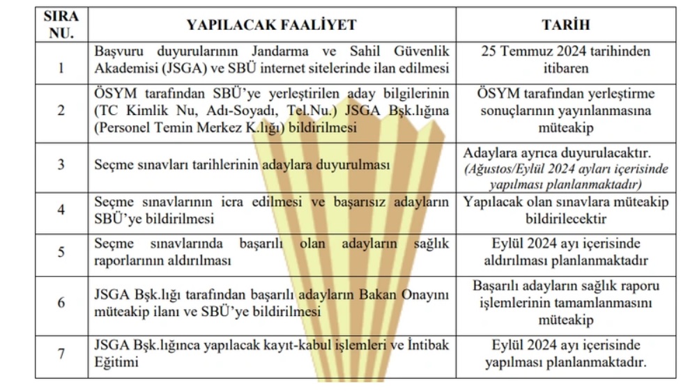 aydinlik.com.tr'de yer alan içeriğe göre; Jandarma Genel Komutanlığı'nın muvazzaf tabip, diş tabibi subay ve sağlık astsubayı ihtiyacının karşılanması maksadı ile, 2024-2025 eğitim ve öğretim senesinde ÖSYM Yerleştirme sonuçlarına göre Sağlık Bilimleri Üniversitesinde (SBÜ) (Ankara) İçişleri Bakanlığı (J.Gn.K.lığı) nam ve hesabına öğrenim görmek üzere öğrenci temin edileceği kaydedildi.