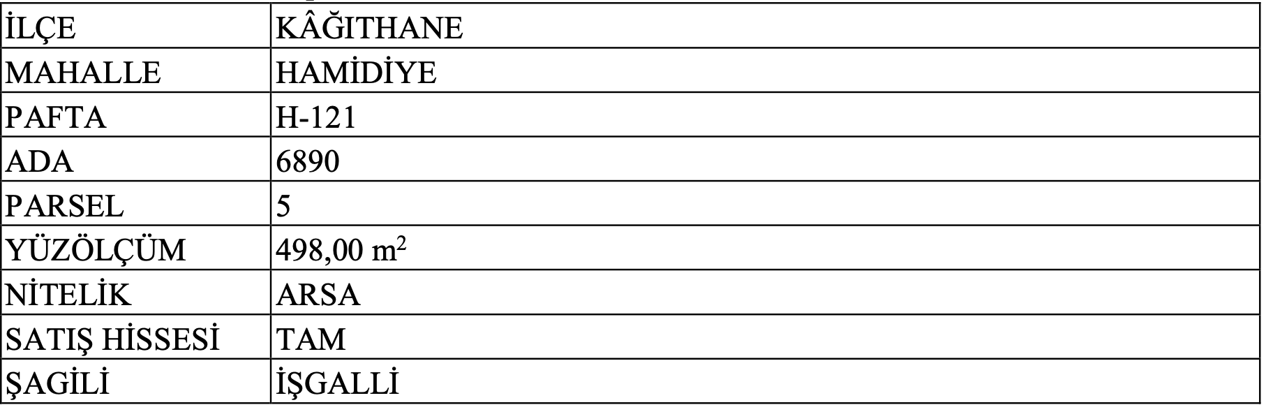 Arsanın satış ihalesi 24 Haziran 2025 tarihinde saat 10.30’da Kağıthane Belediye Başkanlığı encümen salonunda belediye encümeni huzurunda yapılacak.