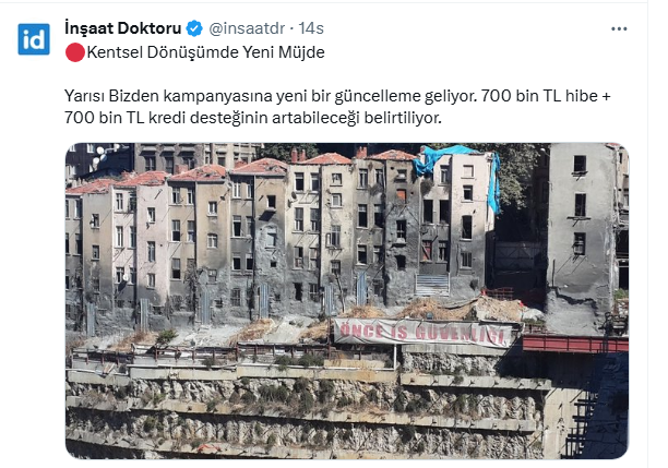 İnşaat Doktoru sosyal medya hesabı X'ten kentsel dönüşümde yeni müjde başlığı ile duyurdu. İnşaat mühendisi, kentsel dönüşümde güncelleme beklendiğini vatandaşlara açıkladı. İşte İnşaat doktorunun sosyal medya hesabı X'ten yaptığı o paylaşım...
