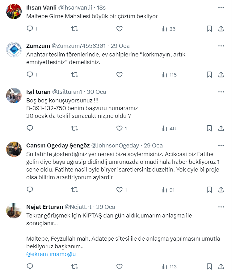 KİPTAŞ Genel Müdürü Ali Kurt'un paylaşımına vatandaşlardan yanıt gecikmedi. İşte o paylaşıma vatandaşlardan gelen yanıtlar...