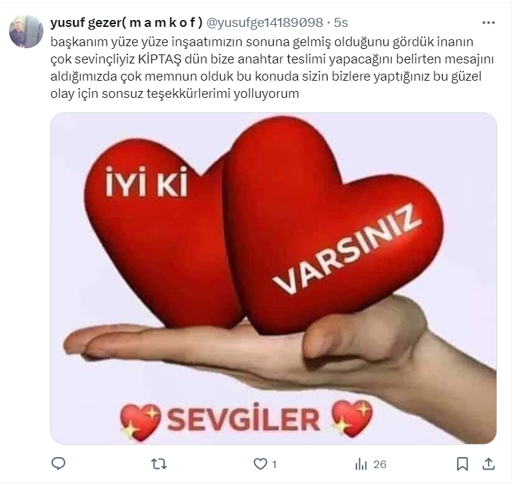 KİPTAŞ Genel Müdürü Ali Kurt'un paylaşımı şu şekilde: