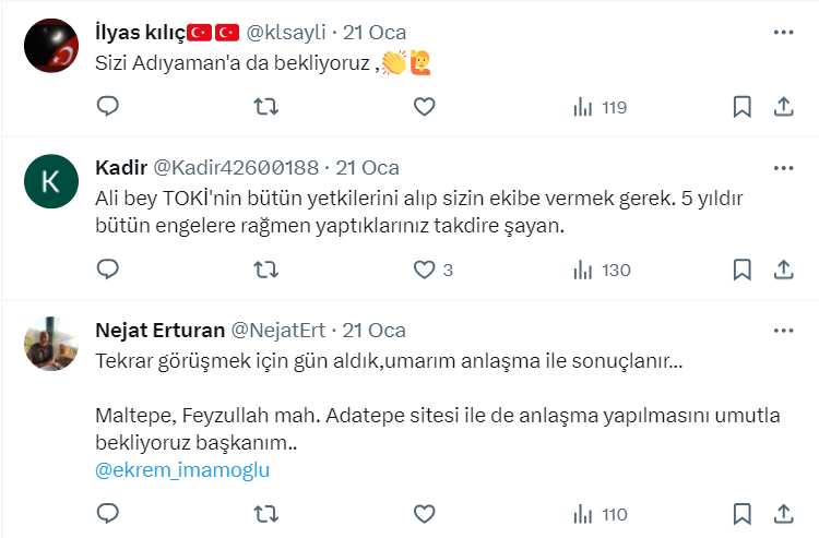 Ali Kurt'un paylaşımına yorum yapan vatandaşlar, Ali Kurt'u Adıyaman'a davet etti.