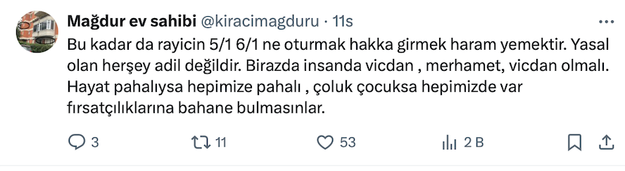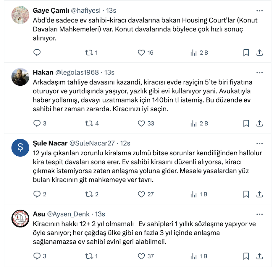 -Kiracı haklıysa ve tahliyeyi gerektirecek bir durum yoksa, tabii ki hakları korunmalı. Ancak, bir emsalinin 30.000 TL olduğu bir eve 5.000 TL gibi çok düşük bir bedelle oturan kiracıya karşı açılan tahliye davasının yıllarca sürmesi anlaşılır değil. Mahkemenin bu tür davaları sürüncemede bırakmak yerine, hızlı bir şekilde sonuçlandırması gerekir.