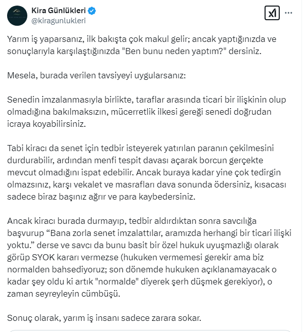Kira günlükleri, kira senedin imzalanmasıyla birlikte, taraflar arasında ticari bir ilişkinin olup olmadığına bakılmaksızın, mücerretlik ilkesi gereği senedi doğrudan icraya konulabileceğini belirterek asıl dikkat edilmesi gerekenin ne olduğunu açıkladı.