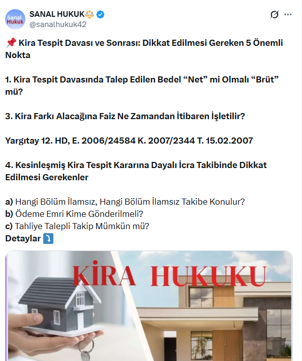 Sanal Hukuk sosyal medya hesabından kira tespit davası açmadan önce ve dava sonrasında dikkat edilmesi gereken hukuki ayrıntıları, Yargıtay kararları ışığında açıkladı. İşte ayrıntılar;
