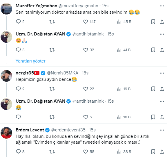 Muzaffer Yağmahan @muzafferyagmahn: Seni tanimiyorum doktor arkadas ama ben bile sevindim