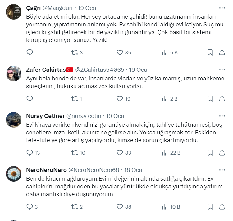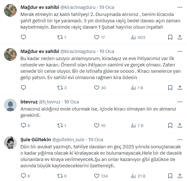 Ev sahipleri ile kiracılar arasındaki tartışmalar hız kesmeden devam ederken, mülk sahipleri de mağduriyetlerini resmi sosyal medya hesapları üzerinden sık sık dile getiriyor.