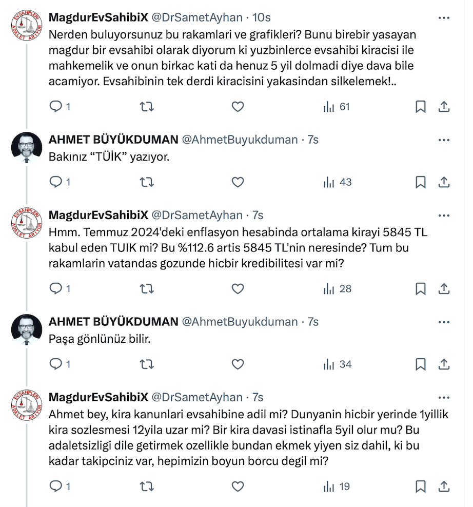 Gayrimenkul Değerleme Uzmanı Dr. Ahmet Büyükduman'ın paylaşımına mağdur ev sahibinden de yorum gecikmedi. İşte o yorumlar...
