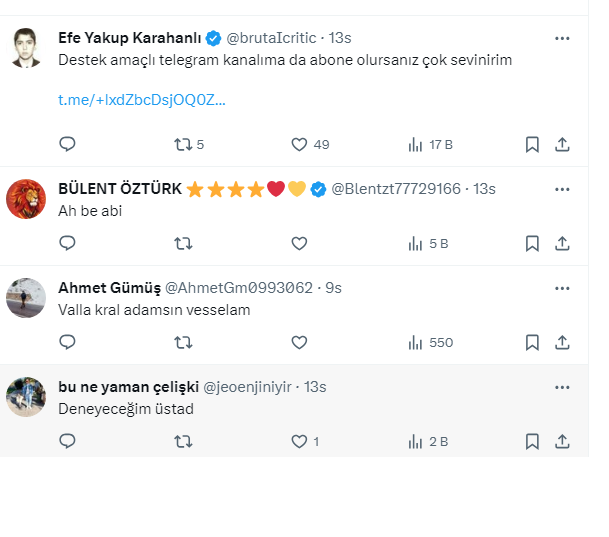 Efe Yakup Karahanlı @brutaIcritic: ''Destek amaçlı telegram kanalıma da abone olursanız çok sevinirim