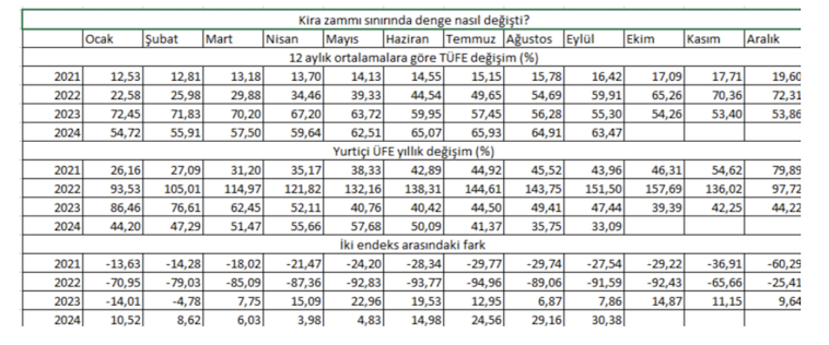 Yİ – ÜFE 2017’den itibaren Tüketici Fiyat Endeksi’nden (TÜFE) daha hızlı bir şekilde artmaya başladı. Bunun üzerine 2019’da söz konusu bu kanun değiştirildi. Yİ-ÜFE yerine 12 aylık ortalama TÜFE’ye geçildi. Milyonlarca kişiyi yakından ilgilendiren kira artışları, 12 aylık ortalama TÜFE artışına endekslendi.